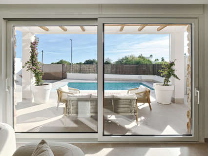 Ubicado en la hermosa zona de Orihuela Costa, este chalet independiente ofrece una experiencia de vida única. Con una distancia de solo 3 km del mar, la propiedad combina la tranquilidad de un entorno residencial con la proximidad a la costa. Diseñado para aquellos que buscan comodidad y estilo, este chalet es ideal para familias o personas que desean disfrutar de un espacio amplio y bien distribuido. La tipología independiente garantiza privacidad y exclusividad, características muy valoradas en esta área.EXTERIORESEl exterior del chalet es un verdadero oasis de tranquilidad. Cuenta con un jardín privado que ofrece un espacio perfecto para disfrutar del aire libre. La terraza es ideal para relajarse o para organizar reuniones al aire libre con amigos y familiares. Además, la propiedad incluye un solárium, proporcionando un espacio adicional para disfrutar del sol y las vistas. La presencia de una piscina privada añade un toque de lujo, permitiendo refrescarse durante los cálidos días de verano.INTERIORESEl interior del chalet está diseñado para ofrecer el máximo confort. Dispone de tres dormitorios, lo que lo hace perfecto para familias o para recibir invitados. Los dos baños están equipados con acabados modernos. La cocina está equipada con electrodomésticos de alta calidad, facilitando las tareas diarias. El sistema de aire acondicionado garantiza una temperatura agradable durante todo el año. Los suelos de gres porcelánico aportan un toque elegante y son fáciles de mantener. Además, cuenta con armarios empotrados que optimizan el espacio de almacenamiento. La seguridad está reforzada con un videoportero, proporcionando tranquilidad a sus residentes.