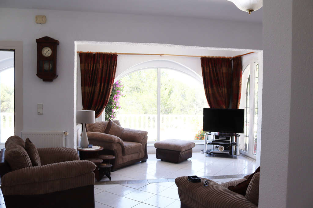 Ubicada en las afueras del encantador y tradicional pueblo de Parcent en el hermoso Vall de Pop, esta villa independiente de 5 dormitorios disfruta de impresionantes vistas desde el Coll de Rates a través del valle. Se accede a la propiedad a través de puertas vehiculares de hierro forjado con un camino de entrada privado, así como una cochera que proporciona espacio de estacionamiento para más de 4 vehículos. La entrada principal a la propiedad se abre a un gran vestíbulo con ventanal con vista directa a Parcent. Luego se accede al luminoso y espacioso salón con área de comedor, aire acondicionado frío/calor, armario de almacenamiento y ventanas de doble orientación, así como puertas francesas que llenan la habitación de luz. La nueva cocina moderna equipada con muebles altos y bajos blancos brillantes está a la izquierda del salón y junto a esta se encuentra el aseo de invitados recientemente renovado. Una escalera abierta con balaustrada de hierro forjado conduce desde el salón al primer piso donde el alojamiento comprende: dormitorio doble 1 con ventilador de techo y vistas a la montaña y al valle; dormitorio doble 2 con armarios empotrados, ventilador de techo y vistas similares; dormitorio doble 3, actualmente configurado como dos camas individuales, con ventilador de techo; La suite principal, particularmente grande, cuenta con aire acondicionado frío/calor, ventilador de techo y un moderno cuarto de ducha en suite; el cuarto de ducha familiar con ducha de esquina, lavabo e inodoro; el dormitorio 5, que actualmente se utiliza como oficina, tiene acceso a un amplio invernadero/sala de estar con acceso a la terraza superior. Un bonito balcón/terraza superior rodea la primera planta de la propiedad y se puede acceder a él desde el pasillo de la primera planta o desde las escaleras de la terraza inferior. En el exterior, podrá disfrutar del sol o la sombra y de impresionantes vistas desde ambas terrazas. Esta propiedad, en excelente estado de conservación, es perfecta como una gran casa familiar, con colegios y servicios cercanos, o para disfrutar de unas vacaciones en esta hermosa zona del norte de la Costa Blanca. El equipo de Property Team sabe que comprar una propiedad en España es una decisión importante, pero con nuestro conocimiento local podemos guiarle durante todo el proceso y responder a cualquier pregunta o duda que pueda tener. Siempre estamos disponibles cuando nos necesite y, si ninguna propiedad en nuestra página web se ajusta completamente a sus requisitos, simplemente díganos qué está buscando y buscaremos la propiedad adecuada para usted.