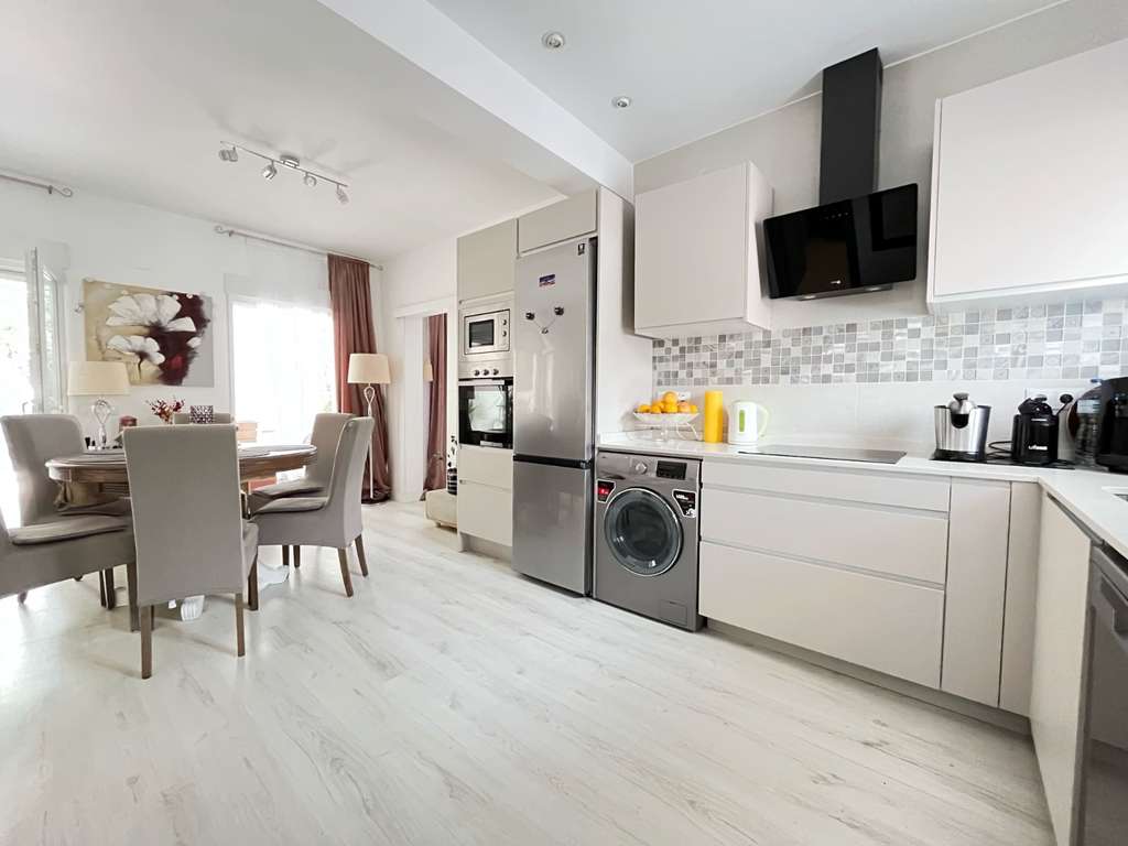 La vivienda está totalmente amueblada y ha sido recientemente reformada, con acabados modernos y de calidad. Dispone de 3 dormitorios y 2 baños, perfecto para familias o para quienes quieren espacio extra. El suelo es de tarima flotante hidrófuga tipo parquet, elegante y resistente al mismo tiempo.