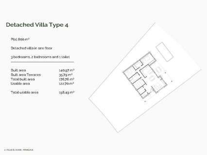 Cada villa se encuentra en una parcela privada de 800 m² y está distribuida en una sola planta, lo que ofrece el máximo confort y accesibilidad. Elija entre 5 distribuciones diferentes con 3 o 4 dormitorios, 2 o 3 baños y superficies construidas que van desde los 130 hasta los 178 m². Todas las viviendas cuentan con amplias terrazas cubiertas, ideales para disfrutar del aire libre durante todo el año.