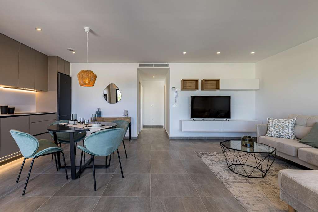 RESIDENCIAL DE OBRA NUEVA DE APARTAMENTOS BUNGALOW EN PILAR DE LA HORADADA Obra Nueva un exclusivo residencial compuesto por 22 apartamentos bungalow de primera calidad con acabados PORCELANOSA en Pilar de la Horadada. Modernos bungalows de 2 dormitorios, 2 baños, cocina americana con salón, armarios empotrados. Las viviendas de planta baja disponen de un amplio jardín acabado en césped artificial y en la planta superior disfrutará del sol todo el año en la terraza y solarium, así como de la zona comunitaria con piscina y una cómoda plaza de aparcamiento. Pilar de la Horadada es un típico pueblo español en la parte más meridional de la Costa Blanca. La gran calle principal tiene supermercados, muchas tiendas, restaurantes y bares y algunas plazas encantadoras. Las hermosas playas de Torre de la Horadada y Mil Palmeras con paseo marítimo de arena fina está a sólo 5 minutos. Los aeropuertos de Corvera (Murcia) y Alicante están respectivamente a 40 y 55 minutos.