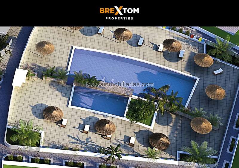 Brextom Properties presents this magnificent residential complex located in Mil Palmeras. The residential complex will be located in a privileged enclave, very close to the sea, commercial areas and multiple services. It consists of communal swimming pools, garden areas, several apartment blocks with two or three bedrooms, two bathrooms and a balcony with stunning views; and blocks of bungalows with two bedrooms, two bathrooms and a solarium or private garden.Garage space option, with storage room for: €15,000