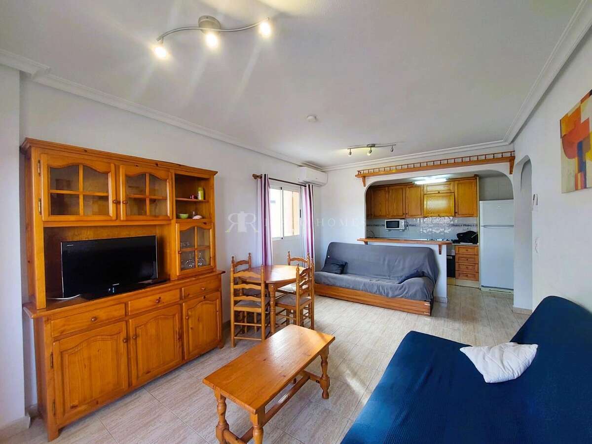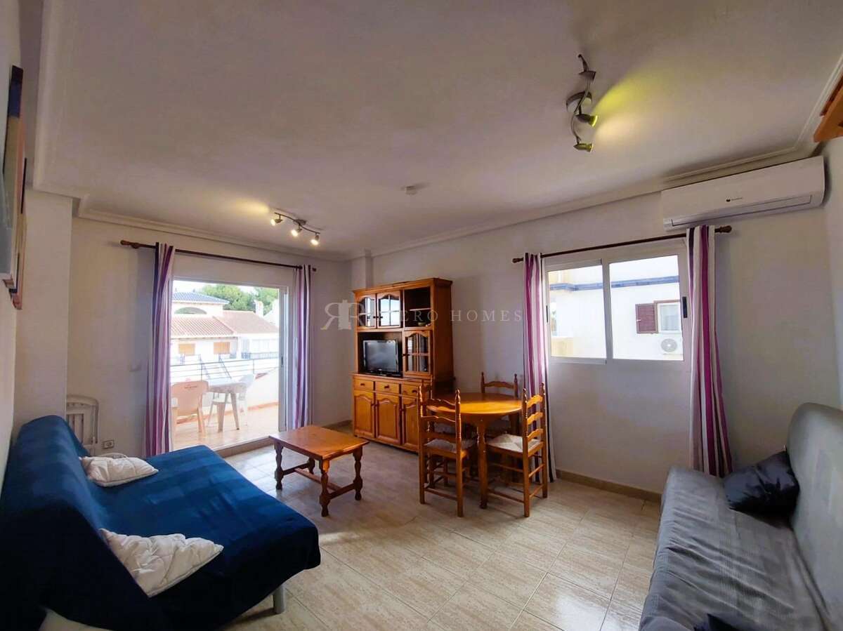 Amplio apartamento en esquina con hall de entrada con armario empotrado, 2 dormitorios dobles con armarios empotrados, 1 baño, cocina con galería acristalada, salón-comedor y una amplia terraza con vistas despejadas a la urbanización. Al ser en esquina es muy luminoso y con sensación de privacidad. ~~La propiedad tiene un trastero de 4m2 ubicado en la terraza comunitaria.~~Es un primer piso sin ascensor.~~Esta ubicado en la bonita urbanización Riomar, fase IV, con fantásticas piscinas, parque, zonas ajardinadas y amplia zona de aparcamiento exterior. A 15 minutos caminando de la Playa de Mil Palmeras. ~~