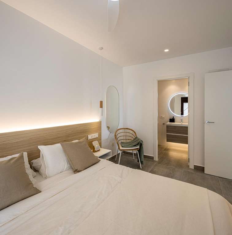 Modernos bungalows de 2 dormitorios, 2 baños, cocina americana con salón, armarios empotrados.