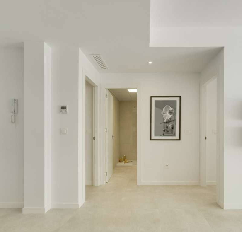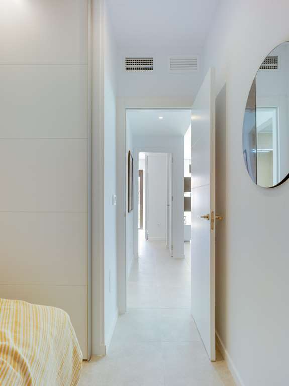 Cada detalle ha sido cuidadosamente seleccionado para garantizar el máximo confort: desde la carpintería interior lacada en blanco, que aporta luminosidad y amplitud, hasta los armarios empotrados revestidos, diseñados para maximizar el espacio y la organización.