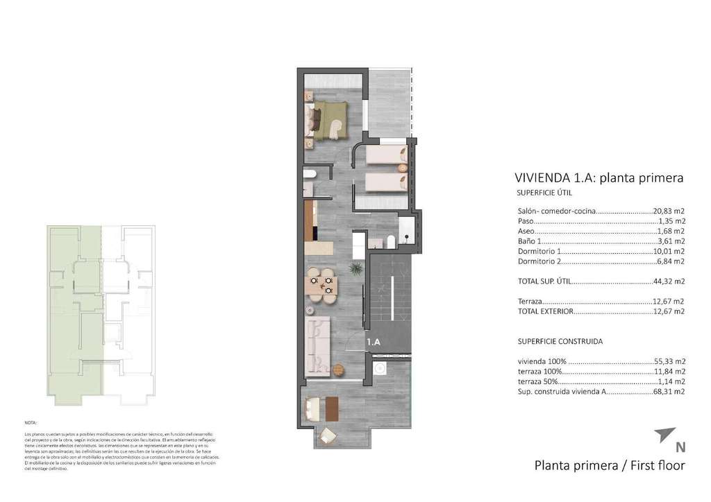 Cada apartamento cuenta con 2 dormitorios y 1 o 2 baños, cuidadosamente diseñados para maximizar el espacio y la luz natural. Los interiores cuentan con: