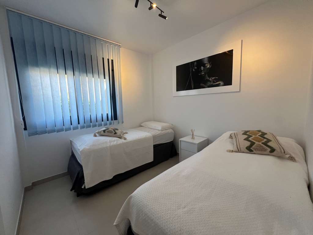¿Por qué invertir en un apartamento exclusivo en Lo Romero Golf – Pilar de la Horadada? Ubicado en un entorno natural privilegiado, Lo Romero Golf es una de las direcciones más codiciadas de la Costa Blanca para los amantes de la tranquilidad, el deporte y el estilo de vida mediterráneo. Este apartamento exclusivo en planta baja, en primera línea de golf, combina confort, modernidad y elegancia en un entorno único. Un apartamento diseñado para el confort y la luminosidad La vivienda ofrece: 2 dormitorios amplios, uno de ellos en suite con baño privado2 baños completos, ideales para el uso diario y para invitadosSalón comedor luminoso con cocina abierta de estilo moderno110 m² construidos, de los cuales 89 m² útiles Un espacio exterior excepcional Entre sus grandes atractivos destaca su terraza de 33 m² y su jardín privado de 55 m². Un lugar perfecto para disfrutar al aire libre, compartir momentos especiales o relajarse contemplando la serenidad del campo de golf. Una vida mediterránea de calidad Piscina comunitaria y zonas ajardinadasPlaza de garaje privadaAire acondicionado y calefacción centralA solo 9 km de las playas y 53 minutos del aeropuertoConstrucción reciente (2022), entrega prevista julio 2025