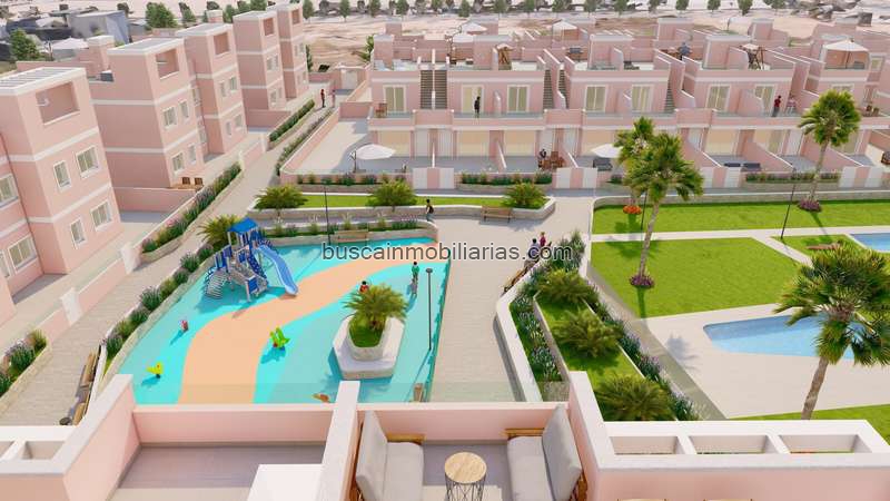 Descubre tu hogar soñado con jardín y terraza exclusivosBienvenido a una encantadora oportunidad residencial en Pilar de la Horadada, donde el confort se encuentra con la conveniencia. En Vincent Real Estate, nos complace presentar una exquisita selección de 24 propiedades que combinan perfectamente comodidades modernas con un entorno sereno. Cada apartamento ofrece un espacio acogedor diseñado para la relajación y el disfrute.Estas propiedades cuentan con tres amplias habitaciones y dos baños bien equipados, proporcionando espacio suficiente para familias o aquellos que disfrutan de entretener a sus invitados. Los interiores están adornados con elegante suelo de porcelanato, creando una base estilosa y duradera para su hogar. Con armarios empotrados, sus necesidades de almacenamiento se satisfacen sin esfuerzo, asegurando un ambiente libre de desorden.Salga a su terraza o área de jardín privada, perfecta para disfrutar del sol o para organizar reuniones con amigos y familiares. Para aquellos que aprecian una experiencia al aire libre elevada, las propiedades cuentan con un solárium, ideal para disfrutar de vistas panorámicas de los pintorescos alrededores.La comunidad cuenta con una variedad de comodidades diseñadas para mejorar su estilo de vida. Disfrute de tardes tranquilas en la piscina comunitaria o deje que sus hijos exploren y jueguen en el área de juegos dedicada. El desarrollo está rodeado de exuberantes áreas ajardinadas, ofreciendo un refugio tranquilo del bullicio de la vida diaria.Dentro de su hogar, comodidades modernas como aire acondicionado y persianas eléctricas garantizan confort y facilidad durante todo el año. Se incluye un garaje, proporcionando estacionamiento seguro para su vehículo y espacio adicional de almacenamiento.Ubicadas a solo 2 kilómetros del mar, estas propiedades ofrecen el equilibrio perfecto entre la vida costera y la accesibilidad. El aeropuerto está convenientemente situado a 48 kilómetros, lo que hace que viajar sea simple y directo.Ya sea que esté buscando una residencia permanente o una escapada vacacional, este desarrollo ofrece una oportunidad inigualable para invertir en una propiedad que satisfaga todas sus necesidades. Confíe en Vincent Real Estate para guiarlo en la búsqueda de su hogar ideal en esta ubicación idílica. Aproveche la oportunidad de poseer un pedazo de paraíso hoy.