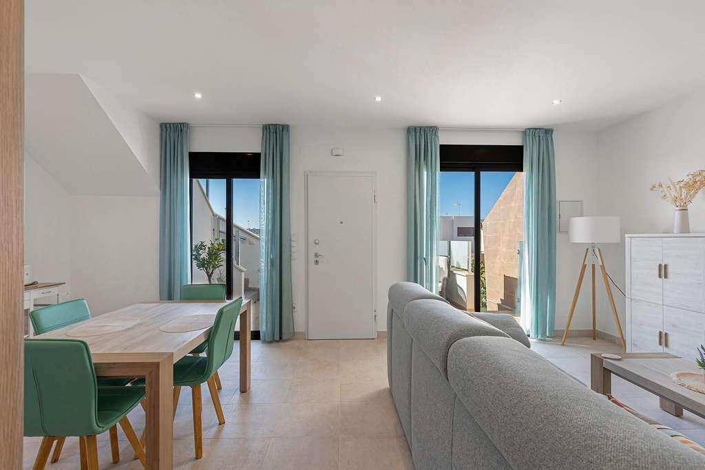 ¡Viva el estilo de vida mediterráneo en el corazón de Pilar de la Horadada! Situado en el centro de la ciudad de Pilar de la Horadada, este elegante ático de 2 dormitorios y 2 baños ofrece la combinación perfecta de diseño moderno, amplios espacios exteriores y vida relajada junto al mar — todo a poca distancia de tiendas, restaurantes, cafés y servicios diarios. Con 77 m² de espacio habitable luminoso y cuidadosamente distribuido para la comodidad y funcionalidad, la propiedad cuenta con un amplio salón-comedor de concepto abierto conectado a una cocina moderna totalmente equipada con electrodomésticos integrados y acabados contemporáneos. Grandes ventanales permiten la entrada de luz natural, creando un ambiente cálido y acogedor. La vivienda incluye dos dormitorios bien proporcionados, incluyendo un dormitorio principal con baño en suite, además de un segundo baño familiar elegante. La propiedad disfruta de múltiples espacios exteriores que aumentan su atractivo durante todo el año. La terraza orientada al oeste, al mismo nivel que el salón, es ideal para disfrutar del sol de la tarde mientras se contemplan vistas a la piscina comunitaria. Un práctico patio trasero proporciona espacio adicional para almacenamiento o uso utilitario. En la parte superior, el amplio solárium privado de 68 m² ofrece sol durante todo el día, perfecto para tomar el sol, comer al aire libre o crear un área lounge para disfrutar del clima mediterráneo. El ático se vende parcialmente amueblado, lo que permite ocuparlo de inmediato, conservando la posibilidad de personalizar el interior. Los residentes disfrutan de acceso a una piscina comunitaria bien mantenida, áreas ajardinadas y un aparcamiento cubierto para bicicletas, ideal para explorar la zona sobre dos ruedas. Además, cuenta con una plaza de aparcamiento exterior privada, que brinda mayor comodidad a los propietarios o visitantes. Situado a solo 4 km de la costa, la propiedad está cerca de las hermosas playas de Torre de la Horadada, famosas por sus extensas playas de arena dorada, aguas cristalinas y playas con Bandera Azul, incluyendo zonas familiares de fácil acceso al mar. El encantador puerto deportivo, los paseos bordeados de palmeras y los chiringuitos crean un ambiente vibrante pero relajado, perfecto para disfrutar de largas jornadas junto al mar y cálidas noches mediterráneas. Combinando una ubicación céntrica en la ciudad con la proximidad a la costa, este ático representa una excelente oportunidad como segunda residencia, inversión de alquiler o vivienda habitual en la Costa Blanca.