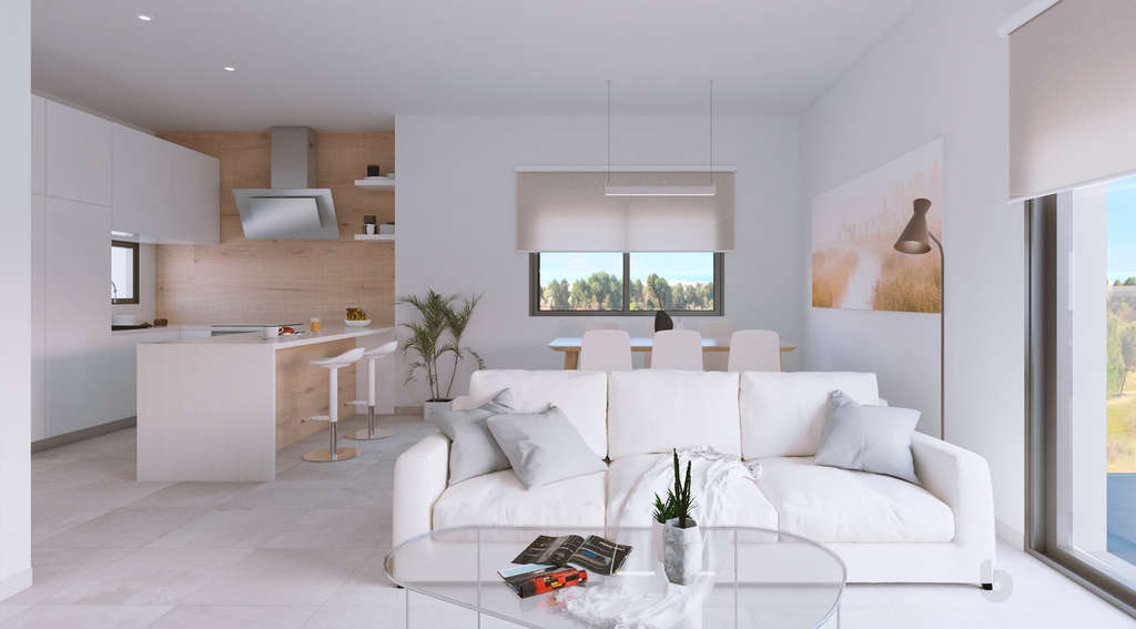 Los exteriores de estas propiedades en Pinar de Campoverde están pensados para maximizar el disfrute del clima mediterráneo. Cada vivienda cuenta con una terraza, ideal para relajarse al aire libre o disfrutar de comidas al fresco. Además, algunas tipologías incluyen un solárium, proporcionando un espacio adicional para tomar el sol o crear un área de ocio personalizada. La presencia de jardines en las propiedades bajos ofrece un espacio verde privado, perfecto para los amantes de la naturaleza o para quienes desean un área segura para que jueguen los niños.