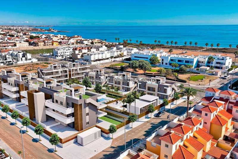 Costa Blanca Eiendom presenta este extraordinario complejo residencial ubicado en Torre de la Horadada, en la codiciada Costa Blanca Sur. Este desarrollo ofrece un estilo de vida inigualable, combinando lujo, comodidad y una ubicación privilegiada junto al mar, a tan solo 100 metros de la Playa de las Higuericas.