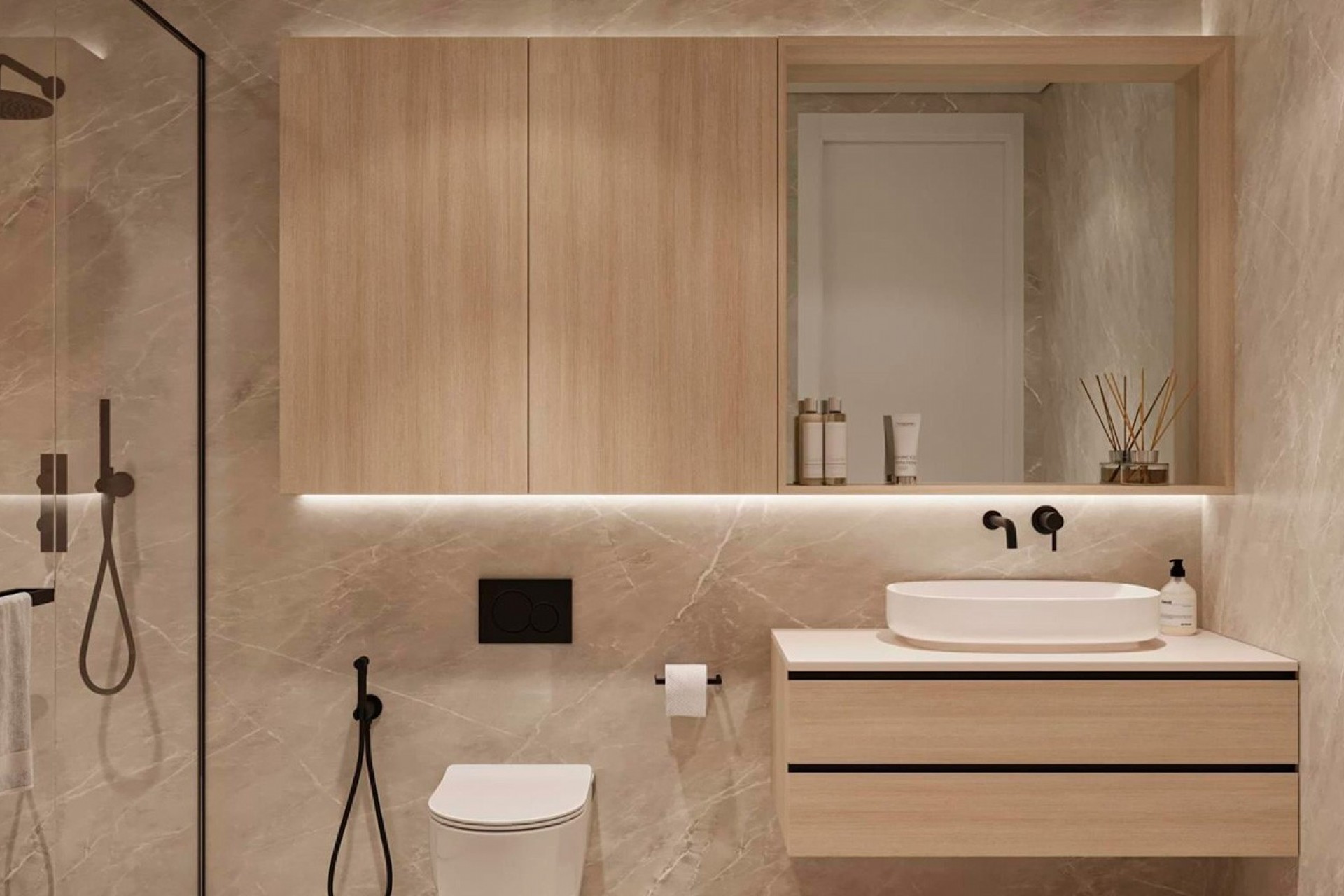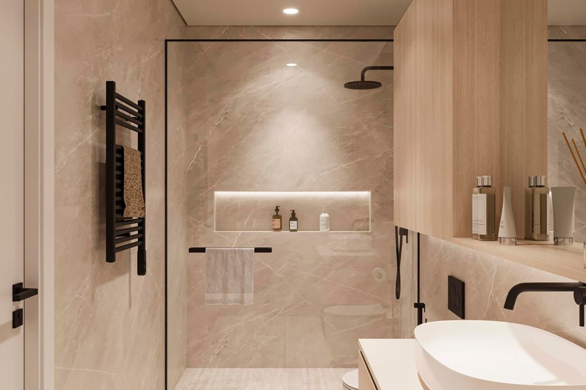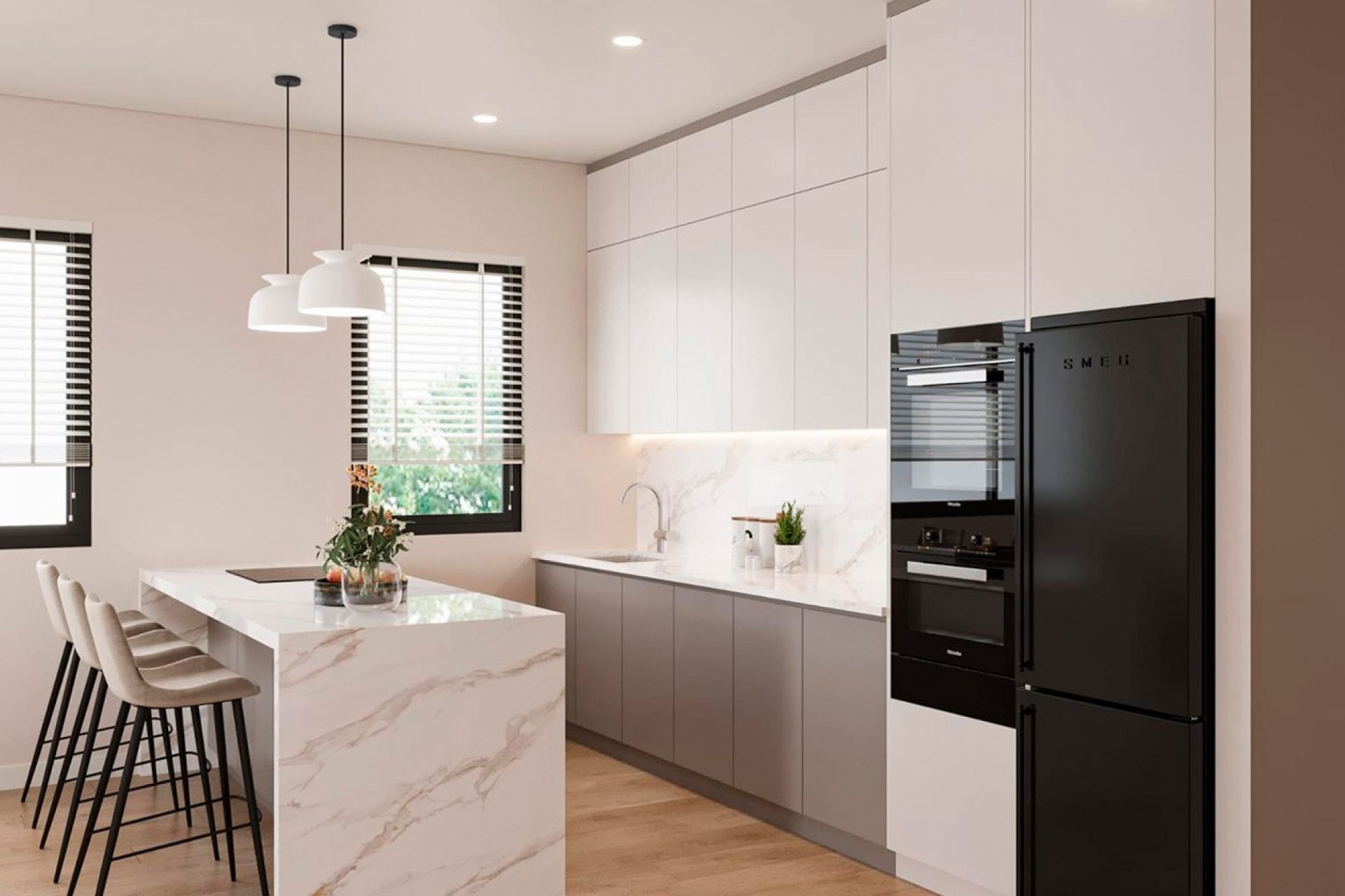 Cada apartamento cuenta con dos dormitorios de generosas dimensiones y dos baños completos con un diseño contemporáneo y acabados de alta calidad que garantizan el confort diario. El salón y comedor de concepto abierto se integran de forma armoniosa con una cocina totalmente equipada, creando un espacio luminoso y funcional para disfrutar tanto de la vida diaria como de momentos especiales con familiares y amigos. Desde aquí se accede a una encantadora terraza privada, perfecta para relajarse al aire libre, disfrutar de un café por la mañana o recibir invitados.