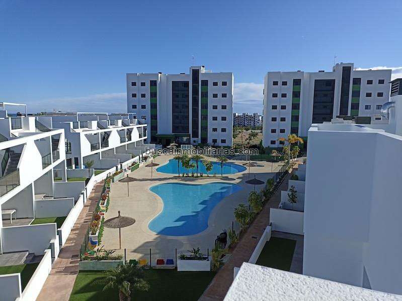 Extras: aire acondicionado, armarios empotrados, muebles, piscina comunitaria, solárium, terraza, autobuses, centros médicos, colegios, golf, parques, supermercados, urbanización, vistas al mar, zonas infantiles, garaje incluido, parking incluido