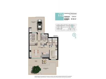 Todas las propiedades tiene 3 dormitorios, 2 baños, cocina americana con el salón, armarios empotrados y terraza.