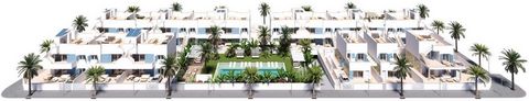 Complejo residencial de obra nueva de bungalow apartamentos con piscina comunitaria en Torre de la Horadada situado a 800m de la playa.