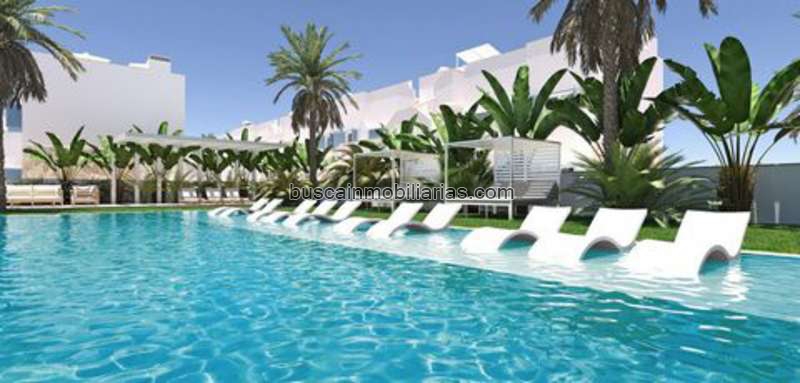 COMPLEJO RESIDENCIAL DE OBRA NUEVA EN TORRE DE LA HORADADA Complejo residencial de obra nueva de bungalow apartamentos con piscina comunitaria en Torre de la Horadada situado a 800m de la playa. Todas las propiedades tiene 3 dormitorios, 2 baños, cocina americana con el salón, armarios empotrados y terraza. Todas las propiedades tienen jardines privados y plaza de aparcamiento. Además bungalows en la planta superior tiene solarium privado. Torre de la Horadada se encuentra al sur de Alicante en una hermosa ubicación en la costa. Las hermosas playas de Torre de la Horadada y Mil Palmeras tienen arena fina hermoso paseo marítimo. Hay un montón de restaurantes, bares y tiendas, también deportes acuáticos, buceo y snorkel. Está bien comunicado a sólo 40 minutos de los aeropuertos de Alicante y Murcias Corvera, con grandes centros comerciales y múltiples campos de golf a poca distancia.