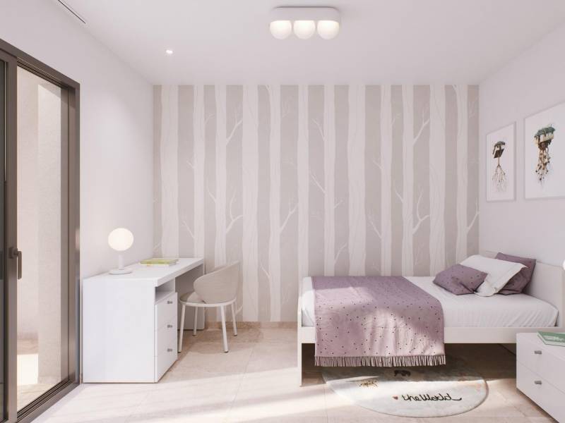 Cada villa cuenta con tres dormitorios y dos baños completos, distribuidos de forma inteligente en un interior luminoso y diáfano. Un jardín privado y un amplio solárium en la azotea con preinstalación para una cocina al aire libre proporcionan los espacios perfectos para disfrutar del sol de la Costa Blanca durante todo el año. La piscina privada opcional añade un nivel extra de confort para relajarse o recibir invitados.