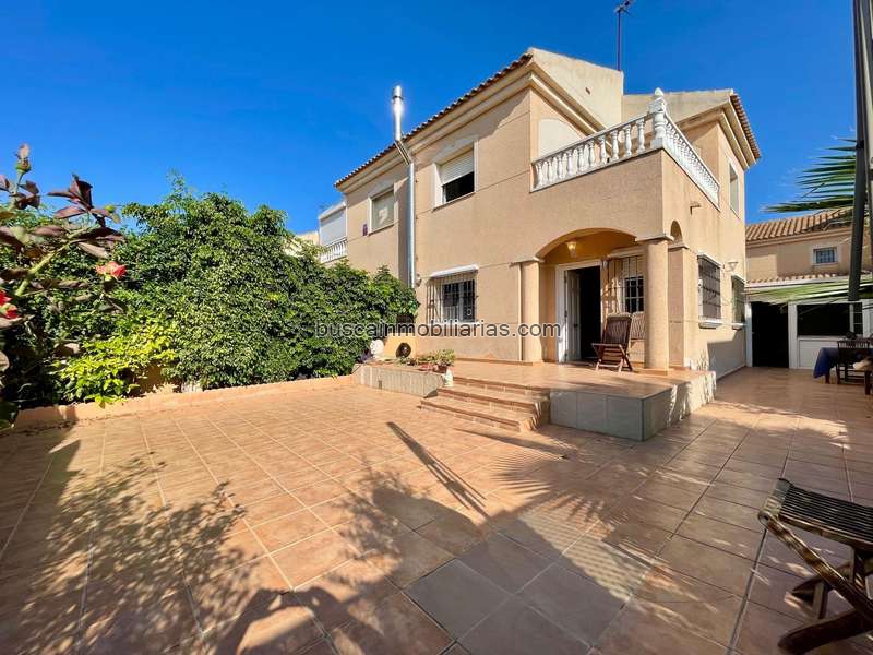 En la inmobiliaria Rosa y Valiente nos complace poder ofrecer a nuestros clientes esta espaciosa casa adosada en la popular Torre de la Horadada. La casa tiene dos plantas. En la planta baja hay un amplio espacio acondicionado para patio donde dejar el coche o poder organizar eventos familiares, hay espacio para poder instalar una piscina de recreo. Cruzando este patio llegamos a la puerta de entrada que conduce al amplio salón comedor. En esta planta hay un dormitorio, un baño y una cocina con patio techado asociado. También hay otra estancia techada y acondicionada como comedor con acceso directo desde el patio. Si subes las escaleras, encontrarás otro baño y dos dormitorios. También hay una acogedora terraza orientada al norte con un agradable sol vespertino. La casa está bien mantenida, así que todo lo que tienes que hacer es mudarte y empezar a disfrutar.