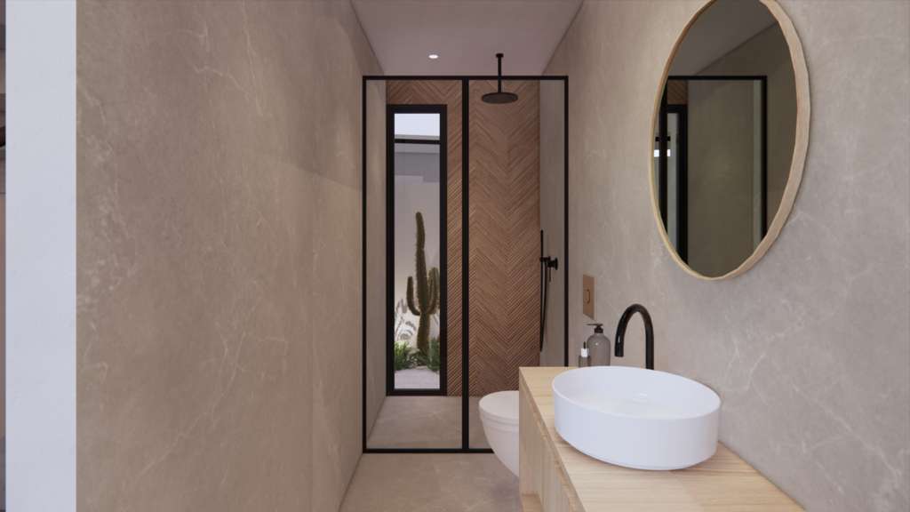 Cada villa es una obra maestra arquitectónica, con una piscina individual que se convierte en el epicentro de la relajación y el entretenimiento en tu propio hogar. Imagina disfrutar de días soleados en tu solarium privado, donde el gres porcelánico imitación madera crea una estética cálida y acogedora. Tanto la parcela como el solarium están adornados con césped artificial, proporcionando un toque de frescura y fácil mantenimiento.