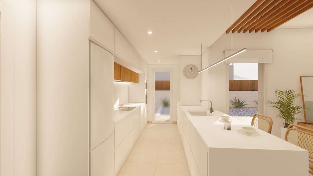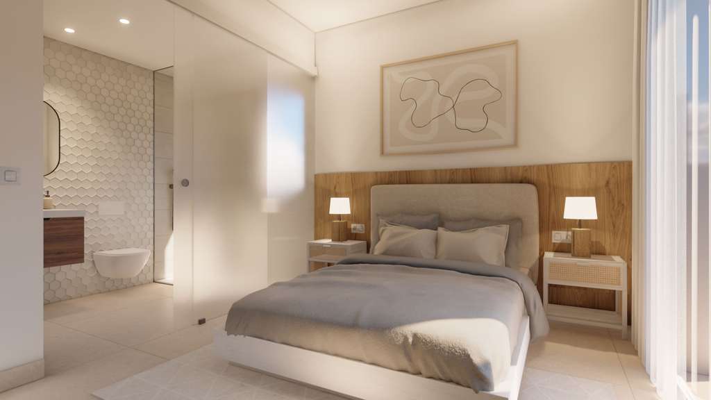 El interior de nuestras villas es un verdadero testimonio de lujo y comodidad. Cada una de ellas cuenta con tres elegantes dormitorios, cada uno con su propio baño en suite, que ofrece privacidad y comodidad para todos los miembros de la familia. El amplio salón de concepto abierto se combina armoniosamente con la cocina, creando un espacio de vida moderno y luminoso distribuido en dos plantas. Experimente el encanto y la funcionalidad en cada rincón de su nuevo hogar.