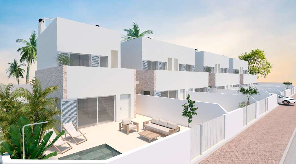 Casas adosadas de obra nueva en venta en Torre de HoradadaCasas adosadas nuevas en un nuevo complejo residencial, ubicado a solo 400 metros de la magnífica playa de arena, en una excelente zona tranquila.Los adosados cuentan con 3 dormitorios, 2 baños, salón, cocina, amplio solárium y piscina privada. Electrodomésticos y fontanería solo de primeras marcas, y ya está incluido en el precio. Los baños tienen calefacción por suelo radiante.El conjunto residencial con gran piscina comunitaria y muy bonita zona ajardinada. Las playas de arena más cercanas están a solo unos minutos a pie. El complejo residencial está ubicado en la hermosa ciudad de Torre de Horadada, a poca distancia a pie de servicios, tiendas, cafeterías, restaurantes, bancos.
