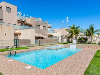 VENDEMOS ADOSADO A UN PASO DEL MAR EN TORRE DE LA HORADADATenemos este adosado a la venta situado a tan solo 300m del mar, en el precioso pueblo costero de Torre de Horadada. La propiedad consta de 3dormitorios y 3 baños, sala de estar, cocina abierta, hermosas terrazas y solarium con vistas al mar. Agradables jardines comunitarios con zona de piscina. El adosado se vende con plaza de aparcamiento subterráneo. Ideal para vivir todo el año o pasar unas vacaciones de verano.La Torre de la Horadada es una localidad playera del Mar Mediterráneo que se encuentra en Alicante y que pertenece al municipio del Pilar de la Horadada. Sin embargo, está muy cerca de la Región de Murcia, justo al lado de las playas del Mar Menor. Se tarda en llegar en coche menos tiempo de lo que se tarda en ir a otras playas de la Región de Murcia.El litoral de Pilar de la Horadada se extiende a lo largo de más de cuatro kilómetros, en los que encontramos ambientes diferentes. Hay playas extensas de fina arena blanca en intenso contraste con el mar azul y pequeños cantiles rocosos, que se adentran en el mar y esconden calas de arena dorada.La pureza de las playas que tiene Pilar de la Horadada ha merecido la Bandera Azul de la F.E.E.E. y el reconocimiento continuo del servicio de calidad de aguas de la Conselleria de Medio Ambiente. Una garantía para disfrutar de un entorno saludable.