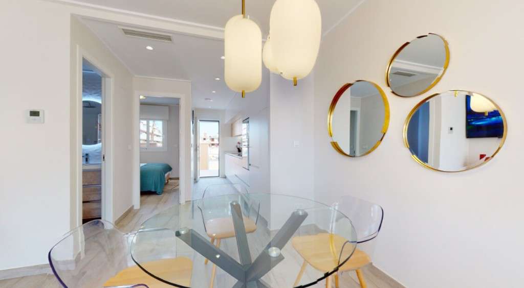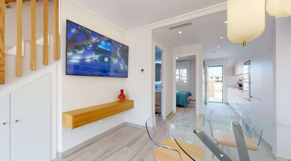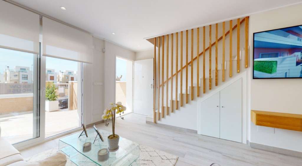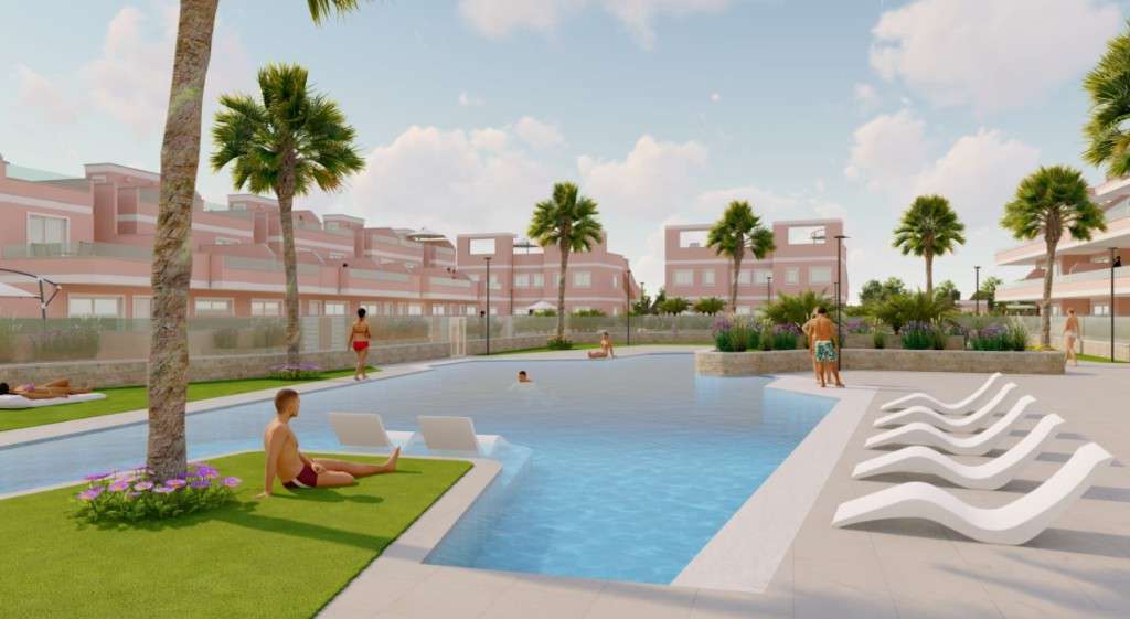 Adosado de obra nueva en venta en Pilar de la HoradadaEl conjunto residencial consta de viviendas adosadas de 3 dormitorios, 2 baños, amplio salón, cocina, solárium y terraza.El complejo en venta tiene piscina. Todos los objetos están hechos con estándares modernos, preinstalación de sistema de aire acondicionado central, muebles en baños y cocina.Pilar de la Horadada se encuentra a tan solo 10 minutos de la playa y con las mejores comunicaciones, tanto por carretera como por aire. Situada a tan solo 20 km de Murcia ya 60 km de Alicante (Costa Blanca), dispone de completos servicios como hospitales, colegios, restaurantes, zonas comerciales, campos de golf.