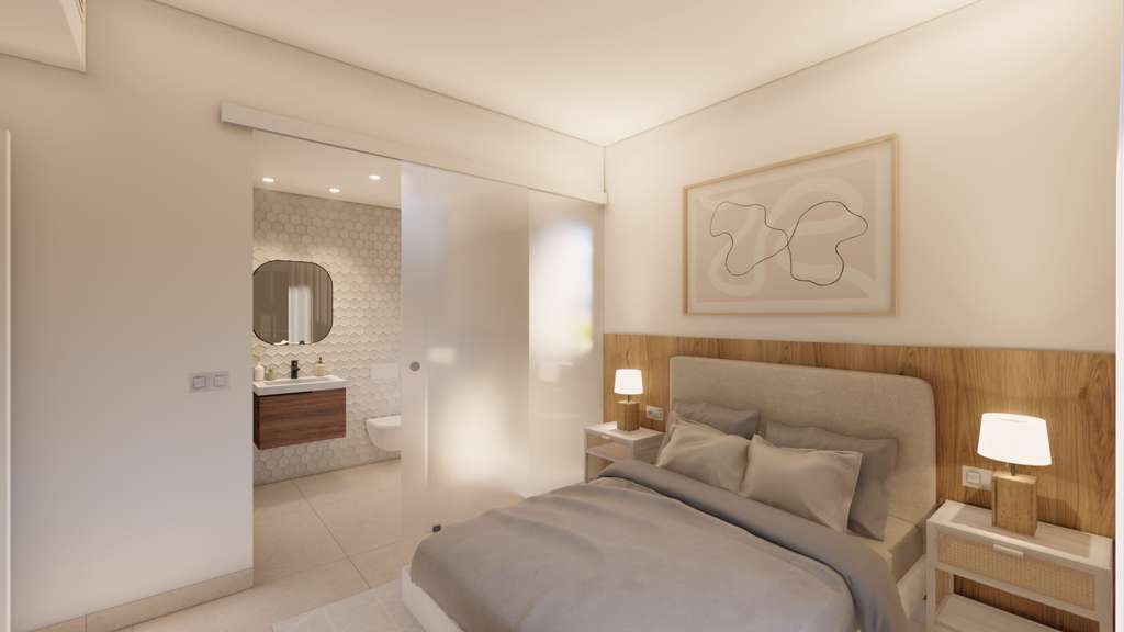 El interior de nuestras villas es un verdadero testimonio de lujo y comodidad. Cada una de ellas cuenta con tres elegantes dormitorios, cada uno con su propio baño en suite, que ofrece privacidad y comodidad para todos los miembros de la familia. El amplio salón de concepto abierto se combina armoniosamente con la cocina, creando un espacio de vida moderno y luminoso distribuido en dos plantas. Experimente el encanto y la funcionalidad en cada rincón de su nuevo hogar.