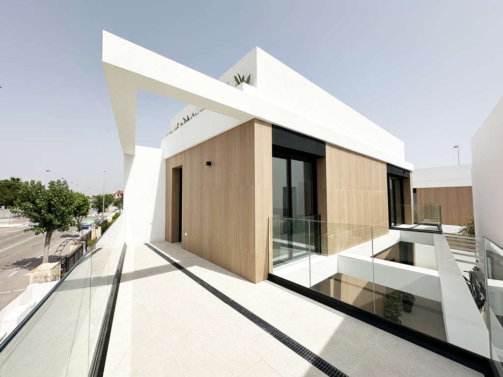 Villas de lujo ubicadas cerca de la playa en Torre de la Horadada. Estas villas están construidas en dos plantas con azotea y cuentan con 3 dormitorios y 3 baños con un aspecto moderno. Aquí podrá disfrutar de numerosas playas de arena y todo tipo de servicios como supermercados, bares, tiendas, supermercados y un bonito puerto deportivo.