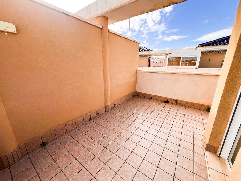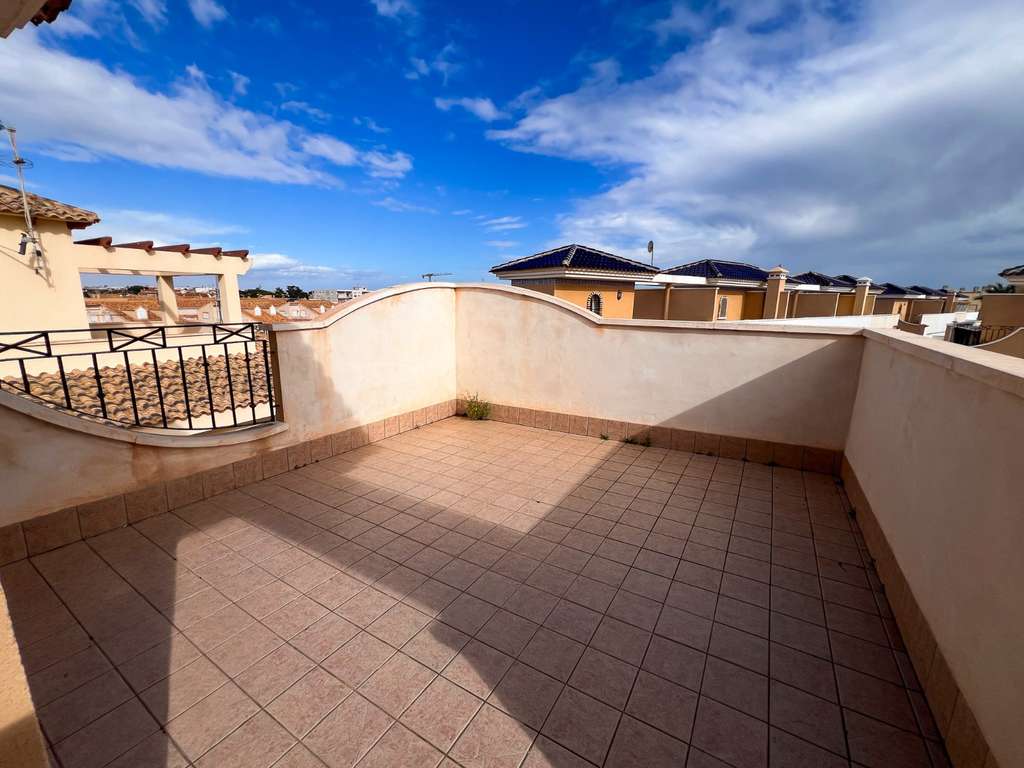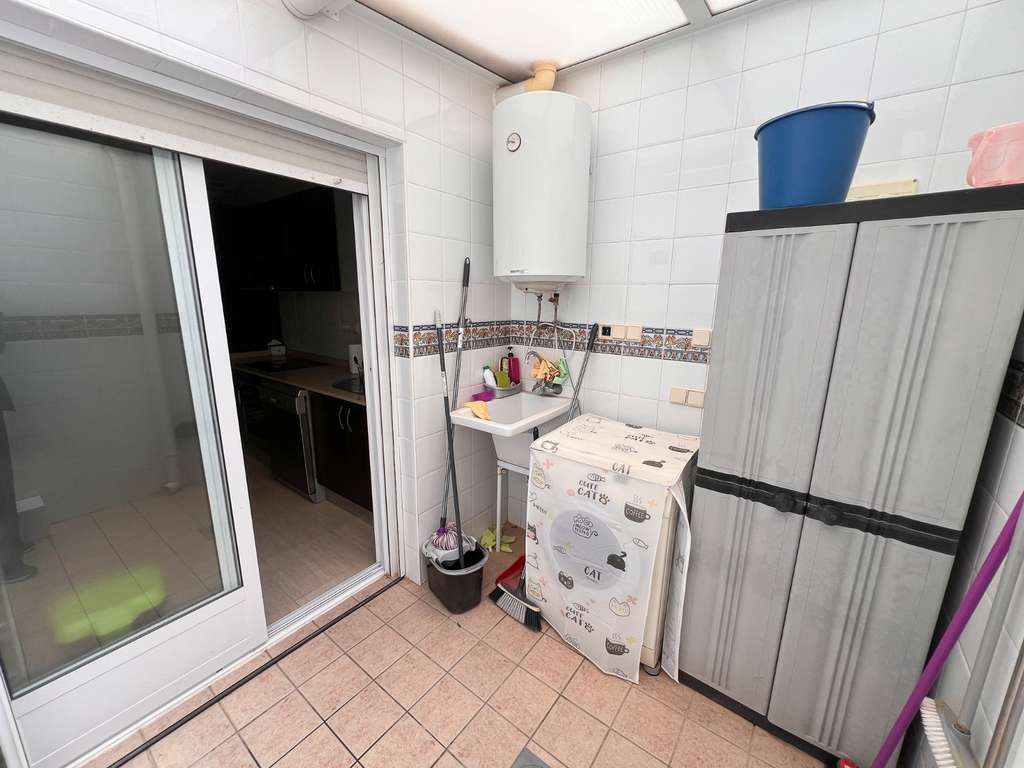 La distribución se organiza en varios niveles. En la planta baja, se encuentran el salón-comedor, un dormitorio, un baño completo, la cocina independiente y el lavadero con acceso al patio trasero. En la primera planta, los dos dormitorios principales disponen de salida a terrazas privadas, y uno de ellos además cuenta con balcón, proporcionando distintos espacios exteriores para relajarse o disfrutar del clima mediterráneo. La planta superior alberga un amplio solárium privado, ideal como zona chill-out o de relax. Como valor añadido, la propiedad dispone de trastero interior y trastero exterior, aportando espacio extra de almacenamiento.