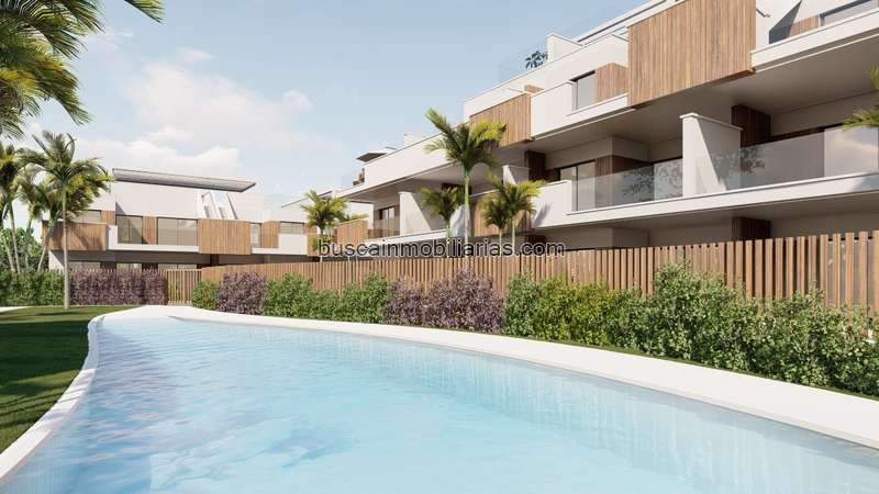 Complejo residencial de nueva construcción de estilo moderno está compuesto por bungalows, apartamentos y áticos tiene un gran jardín comunitario con piscina, gimnasio y zona de juegos para los niños.