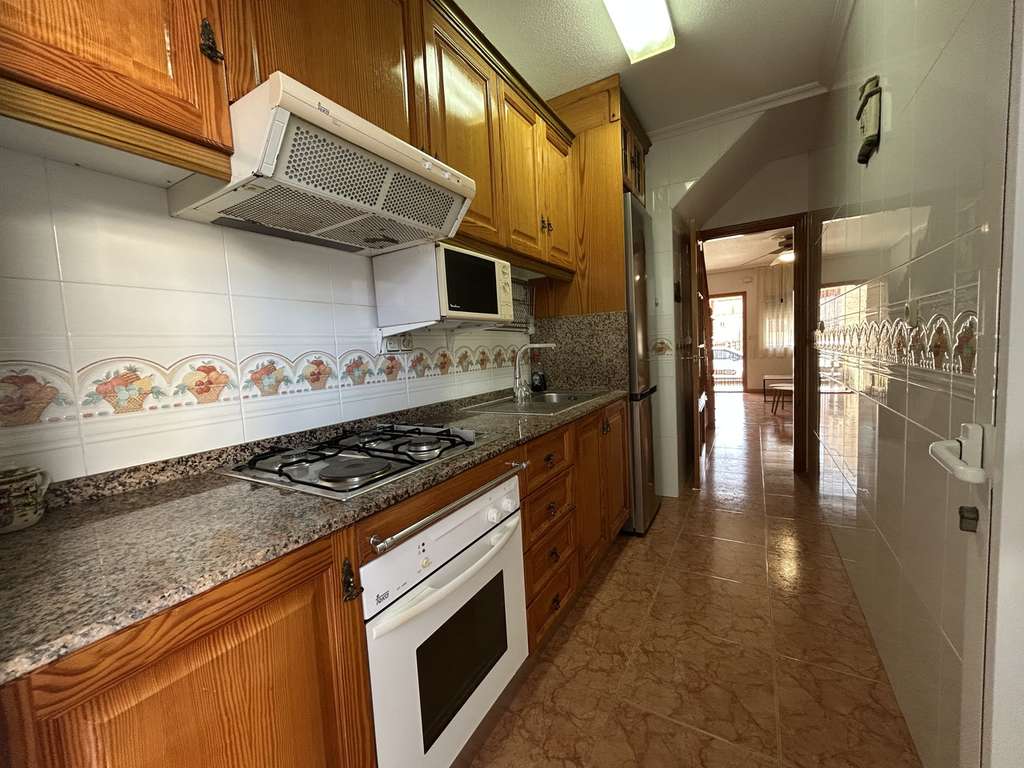 Descubra la vida costera en su máxima expresión en esta preciosa casa adosada de 4 dormitorios, completamente amueblada, en la codiciada localidad costera de Torre de la Horadada, a solo 5 minutos a pie de la playa. Al entrar, encontrará un interior amplio y luminoso, cuidadosamente diseñado para una vida cómoda. Un acogedor salón ofrece un remanso de paz, mientras que la cocina totalmente equipada ofrece amplio espacio de almacenamiento y trabajo para su comodidad diaria. El diseño flexible incluye dormitorios distribuidos en diferentes niveles, lo que hace que la casa sea ideal para familias, invitados o aquellos que buscan alojamiento en la planta baja. Vida cómoda y versátil Cuatro dormitorios bien proporcionados y varios baños garantizan practicidad y privacidad, ya sea para recibir visitas o disfrutar de una vida familiar tranquila. Vida al aire libre en su máxima expresión Disfrute del clima mediterráneo desde su soleada terraza privada, perfecta para cenar al aire libre, tomar el sol o tomar una copa por la noche. Características principales Totalmente amueblado, listo para mudarse 4 espaciosas habitaciones en varios niveles Sala de estar luminosa y cómoda Terraza privada soleada + balcón Cocina totalmente equipada A solo 5 minutos a pie del mar Ubicado en una vibrante comunidad costera Ya sea que esté buscando una residencia permanente, una escapada de vacaciones o una oportunidad de inversión, esta casa adosada ofrece el equilibrio perfecto entre espacio, comodidad y una ubicación inmejorable junto al mar.