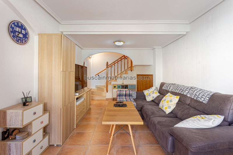 Esta casa adosada en venta de 86 m2 se encuentra en El Mojón, una de las zonas costeras más tranquilas de Pilar de la Horadada, a solo 300 metros del mar, cerca de playas, del paseo marítimo y de parques, y rodeada de todos los servicios: supermercados, restaurantes, farmacias y zonas deportivas.La vivienda está distribuida en dos plantas y ofrece una excelente comodidad:Planta baja: amplio salón-comedor de 22 m2, perfecto para disfrutar en familia; cocina independiente equipada; un dormitorio en esta planta con acceso cómodo; un baño completo; y un trastero ideal para almacenar bicicletas, material de playa o enseres. Además, cuenta con una terraza delantera para relajarse al aire libre.Primera planta: dispone de dos dormitorios luminosos, ambos con armarios empotrados que optimizan el espacio, un baño completo y una terraza privada con vistas despejadas.En la azotea se encuentra un solárium privado, perfecto para tomar el sol, crear una zona chill out o disfrutar de la brisa del mar.Gracias a su excelente ubicación, esta propiedad es ideal tanto como residencia habitual como para disfrutar de vacaciones en la Costa Blanca Sur. La cercanía al mar, al paseo marítimo y a zonas verdes la convierte en una gran oportunidad para quienes buscan vivir cerca de la playa con todos los servicios a mano.