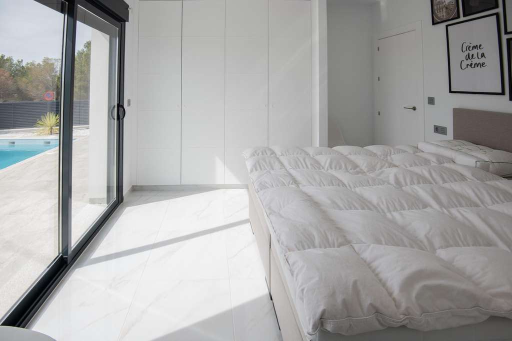 VILLAS DE OBRA NUEVA EN PINAR DE CAMPOVERDE Residencial moderno de villas de nueva construcción en Pinar de Campoverde. Pequeña promoción de sólo 5 chalets, construidos en una sola planta con una distribución de 3 dormitorios y 2 baños, zona de salón comedor cocina abierta, totalmente equipada, con isla central y vistas a la piscina privada, en parcelas independientes desde 300,00 m2. También hay un gran solárium para disfrutar del sol y de las bonitas vistas durante todo el año. Las villas se encuentran en una ubicación privilegiada junto al paraje natural Río Seco y cerca de los servicios, instalaciones deportivas y el cercano campo de golf de Lo Romero, la localidad española de Pilar de la Horadada y a sólo 15 minutos en coche de las playas de arena blanca de La Torre De la Horadada. El lugar perfecto si quiere estar en un lugar tranquilo, rodeado de naturaleza y cerca d e todos los servicios, del golf y de bonitas playas.