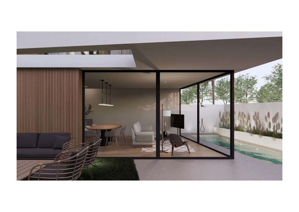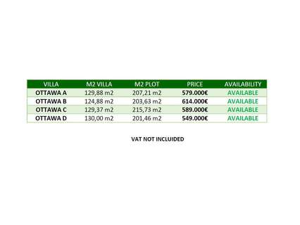 Promoción de villas de lujo, ubicada en Torre de la Horadada. 4 villas de 3 habitaciones y 3 cuartos de baño y 130 m2 construidos aprox. distribuidos en planta baja, planta primera y solárium y con parcelas aprox. de 200 m2 con piscina independiente.