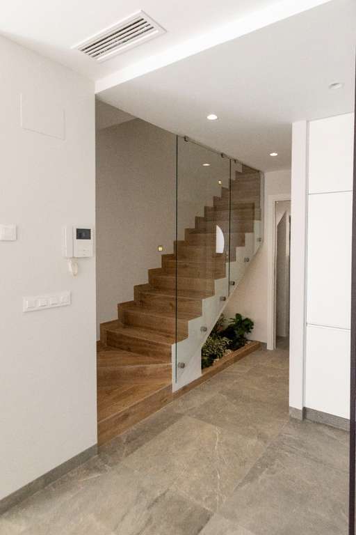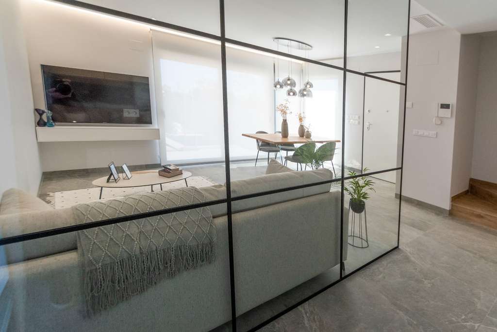 Estas modernas villas, ubicadas en Lo Romero Golf, se entregarán con una cocina bellamente amueblada con los siguientes electrodomésticos incluidos: vitrocerámica, campana extractora, lavadora, lavavajillas, horno, microondas y frigorífico. Los dormitorios dispondrán de armarios empotrados con iluminación LED y los amplios baños también estarán bellamente amueblados (mamparas de ducha incluidas en el precio). Se dispondrá de un sistema de aerotermia para la producción de agua caliente sanitaria de forma que se pueda generar agua caliente sanitaria de forma energéticamente eficiente. Además, estas villas estarán equipadas con persianas eléctricas y ya habrá preinstalación de aire acondicionado por conducción para salón y dormitorios. Además, el espacioso solárium, con una hermosa vista sobre el campo de golf, estará equipado con una cocina exterior y una ducha exterior (fría - calor).