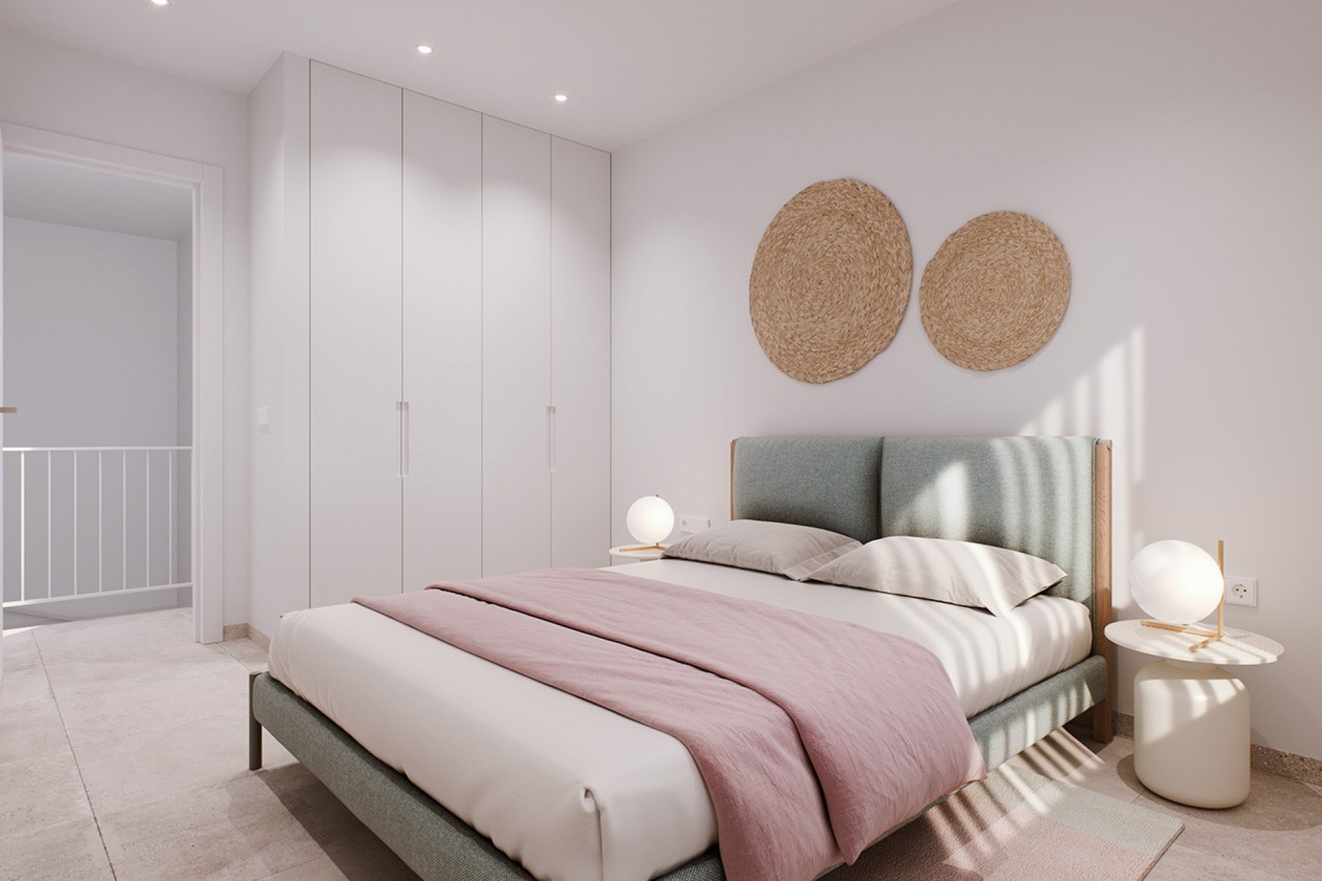 Cada una de las cuatro viviendas unifamiliares ha sido diseñada con esmero para brindar una experiencia de vida cómoda y luminosa. Cuentan con 3 amplios dormitorios y 2 baños completamente equipados con platos de ducha de resina, mamparas de vidrio templado y muebles suspendidos. En la planta baja se encuentra un acogedor salón-comedor con cocina integrada, acceso directo al jardín privado y posibilidad de construir una piscina privada, ideal para disfrutar del clima mediterráneo durante todo el año. Además, en esta planta hay un dormitorio, un baño completo y espacio para aparcamiento dentro de la parcela.