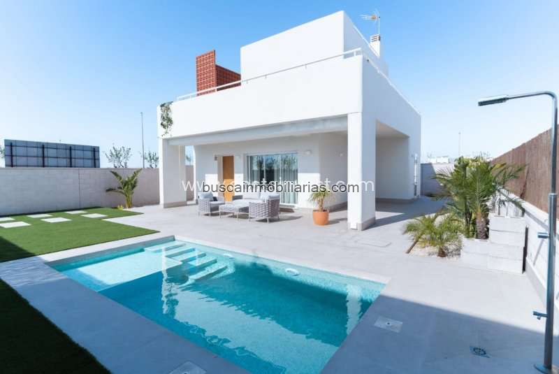 Se vende villa en Pilar de la Horadada. Superficie 120 m2. Precio 439.000 €. La villa tiene 3 habitaciones, 3 baños y piscina.