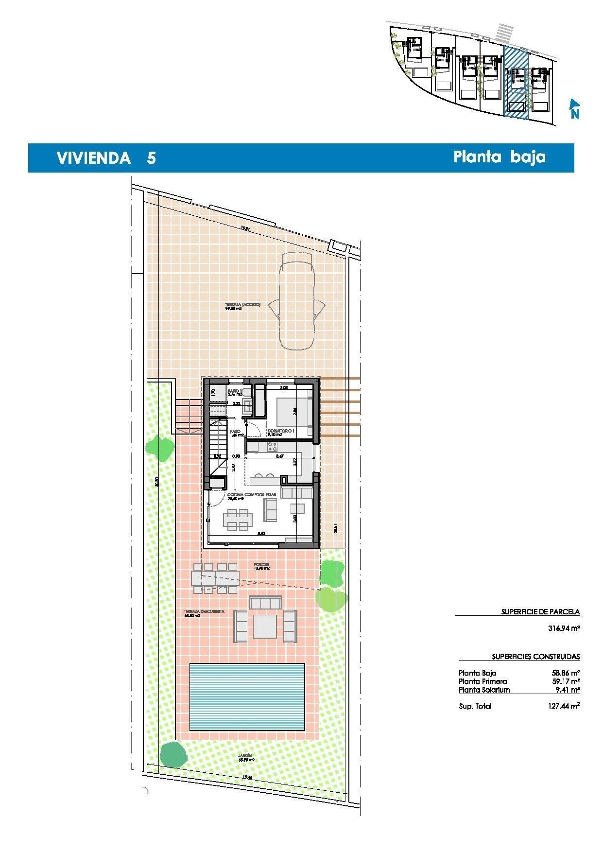 Además, cada villa tiene su propia parcela con piscina privada, plaza de aparcamiento y terraza con solarium y cocina de verano.