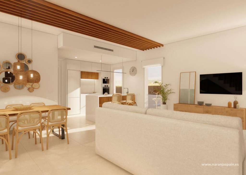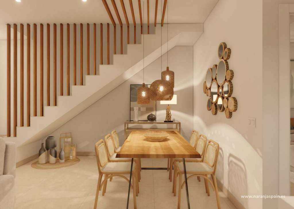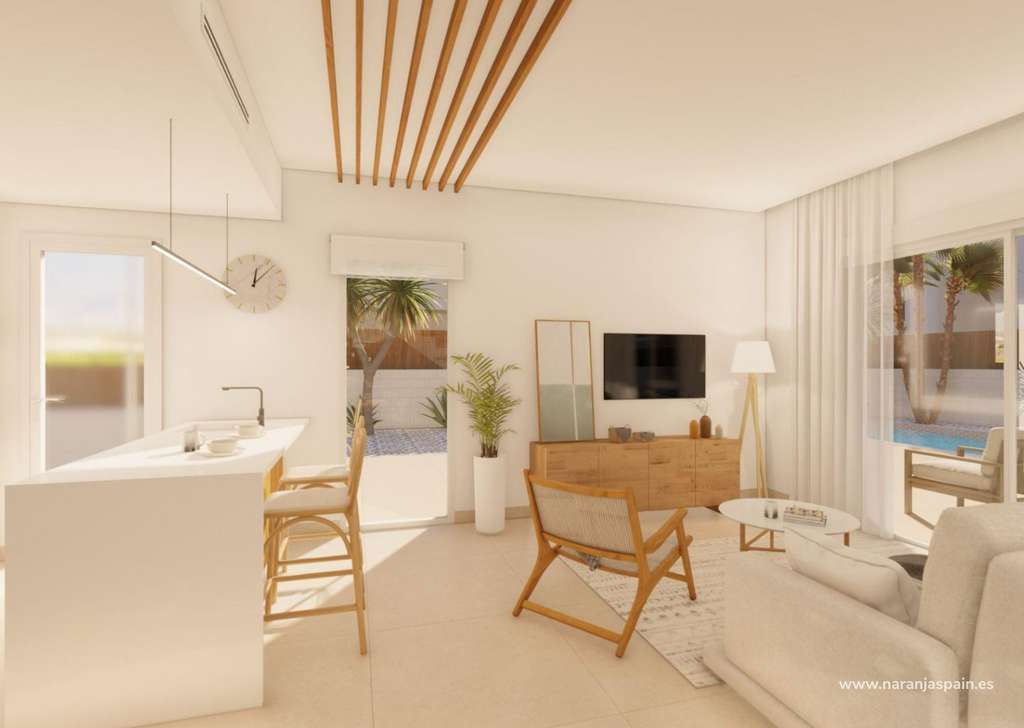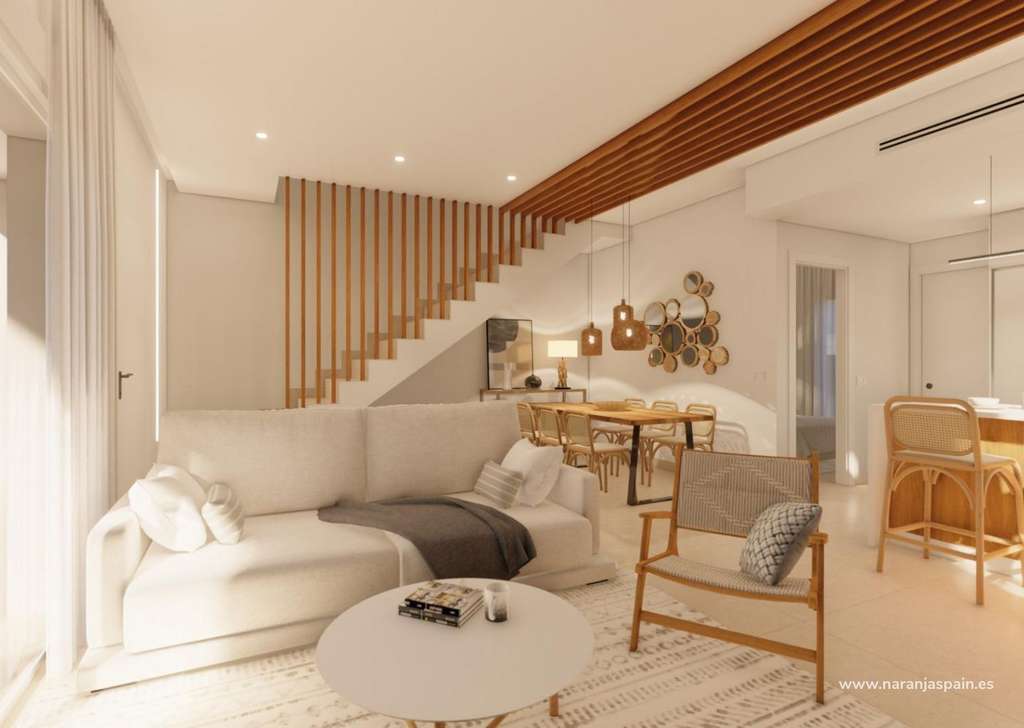 El interior de las villas constan de 3 dormitorios, 3 baños en suite, amplio salón de planta abierta con cocina todo situado en dos plantas.