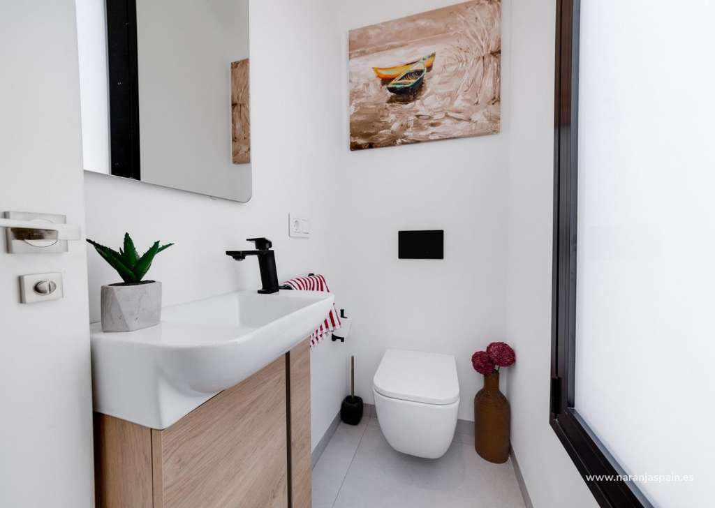 Las villas de obra nueva se distribuyen en 2 plantas, tienen 3 dormitorios, 2 baños, aseo, cocina americana con salón, armarios empotrados, jardín privado con piscina y plaza de aparcamiento.
