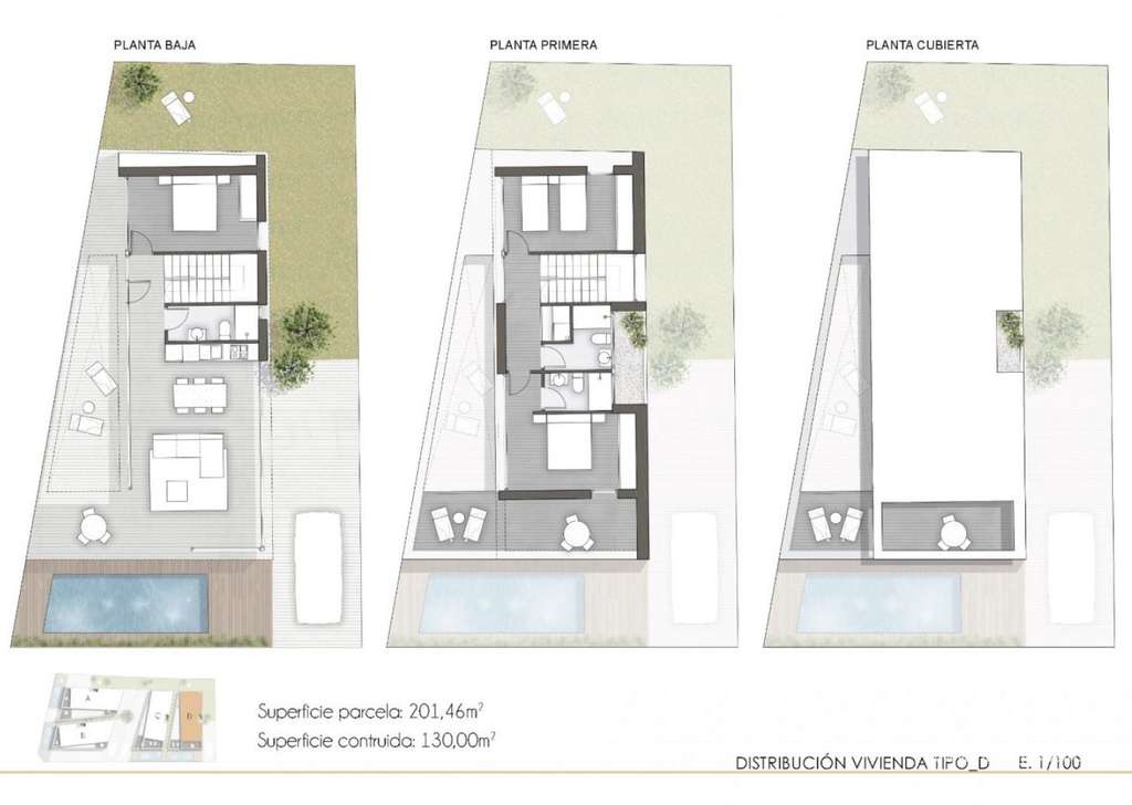 Promoción de nueva construcción de 4 villas independientes, con aproximadamente 215m2. de parcela, 130m2 aprox. construida dividida en planta baja, primer piso, solarium y con posibilidad de sótano con un costo extra.