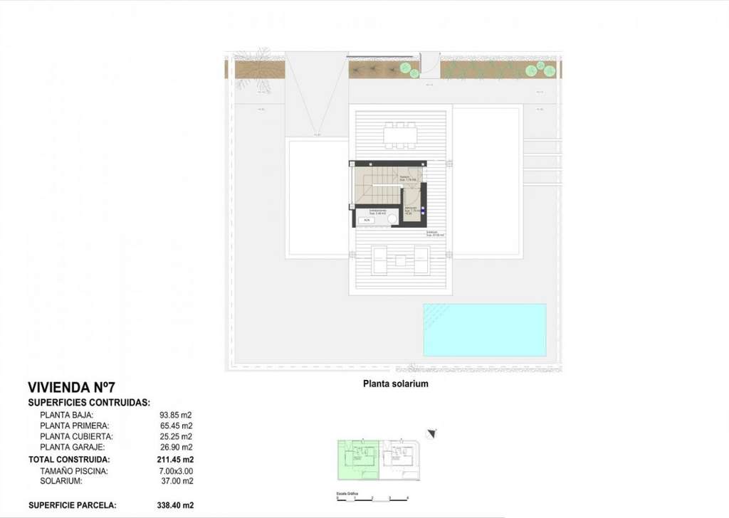 Las villas cuentan con una parcela de 336m² o 338m², y una superficie construida de 211m².