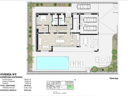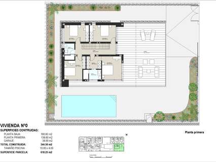 Villa consta de una parcela de 618 m², con 344 m² construidos.