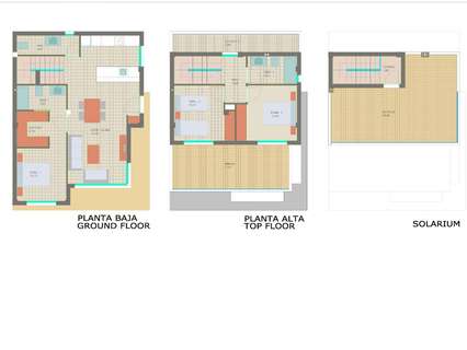 Villas construidas en 2 plantas dispone de 3 dormitorios, 2 baños, aseo, cocina americana con el salón, sótano, terraza y solarium, jardín con piscina privada.
