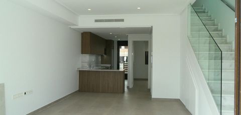 Viviendas tienen 3 dormitorios, 2 baños, cocina abierta, salón con acceso directo a la acogedora zona de la piscina, terraza en la parte trasera con plaza de aparcamiento, terraza y gran solarium en la azotea.