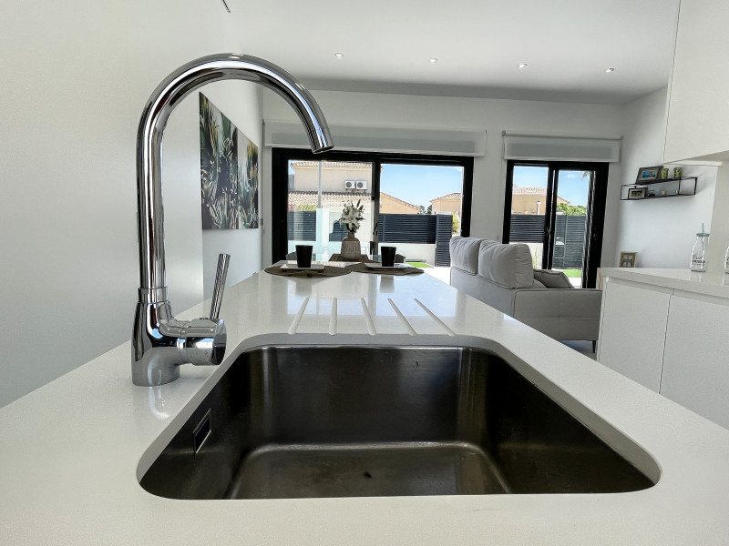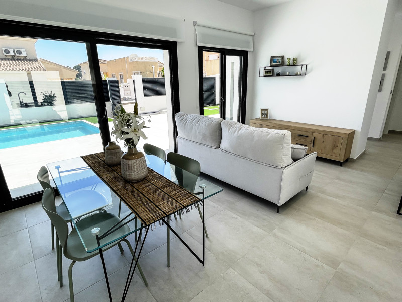 La ubicación de estas villas ofrece lo mejor de ambos mundos: tranquilidad y accesibilidad. Situadas junto al paraje natural del área, disponen de todas las facilidades modernas incluyendo instalaciones deportivas y proximidad a un prestigiado campo de golf local, así como la vibrantemente activa comunidad española de Pilar de la Horadada. Además, las impresionantes playas de arena blanca se encuentran a tan solo 15 minutos en coche, ofreciendo un escape perfecto al mar.