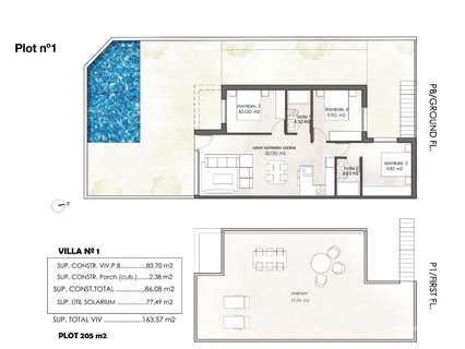 Pareados construidas en 1 planta y dispone de solarium privado, 3 dormitorios, 2 baños, cocina americana con el salón, jardín con plaza de aparcamiento.