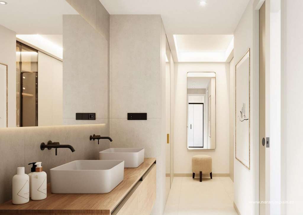 Aire acondicionado por conductos totalmente instaladoPersianas eléctricas y puertas de entrada reforzadasPaquete de iluminación LED para zonas interiores y exterioresCocinas equipadas con electrodomésticos BOSCH o SIEMENSBaños elegantes con calefacción por suelo radiante, espejos, muebles de baño y mamparas de duchaDiseño moderno que maximiza la luz natural y la funcionalidad
