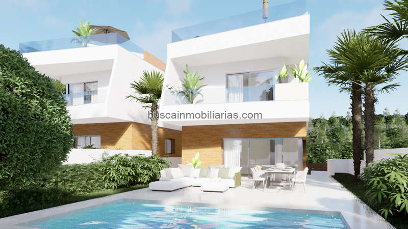 Descubra su casa independiente de ensueño en la encantadora zona de Pilar de la Horadada, presentada exclusivamente por Vincent Real Estate. Esta notable propiedad es una de las seis disponibles, ofreciendo una oportunidad única de poseer un santuario privado cerca de uno de los campos de golf más solicitados de España, a solo 0,1 km de distancia. Además, la conveniencia de estar a solo 38,0 km del aeropuerto más cercano garantiza un fácil acceso tanto para negocios como para ocio.Estas casas están diseñadas con comodidad y lujo en mente. Con tres amplias habitaciones y tres baños modernos, hay espacio suficiente para la familia y los invitados. Cada propiedad cuenta con una piscina privada, perfecta para disfrutar del clima soleado con total privacidad. Las casas también presentan un jardín bellamente ajardinado y una terraza donde puede relajarse y entretenerse al aire libre.Para aquellos que disfrutan de vistas impresionantes, cada propiedad incluye un solárium, ideal para tomar el sol o contemplar las estrellas por la noche. La practicidad se une al estilo con armarios empotrados y suelos de porcelanato en toda la casa, asegurando tanto elegancia como funcionalidad.Aunque las propiedades no están amuebladas, vienen equipadas con electrodomésticos esenciales, lo que facilita su instalación y le permite comenzar a disfrutar de su nuevo hogar. Las persianas eléctricas añaden un toque de comodidad moderna, permitiéndole controlar la luz natural con facilidad.Aunque el desarrollo no incluye comodidades comunitarias como piscina o gimnasio, cada casa está equipada con su propia piscina privada, garaje y espacio de jardín. La preinstalación para aire acondicionado proporciona la infraestructura para una futura instalación si se desea.Experimente la perfecta combinación de tranquilidad y accesibilidad con estas exquisitas propiedades. Ya sea que esté buscando una residencia permanente o un refugio vacacional, estas casas ofrecen todo lo que necesita para vivir cómodamente y con estilo. Contacte a Vincent Real Estate hoy mismo para obtener más información sobre esta oportunidad exclusiva y programar su visita. ¡Su casa de ensueño le espera en Pilar de la Horadada!